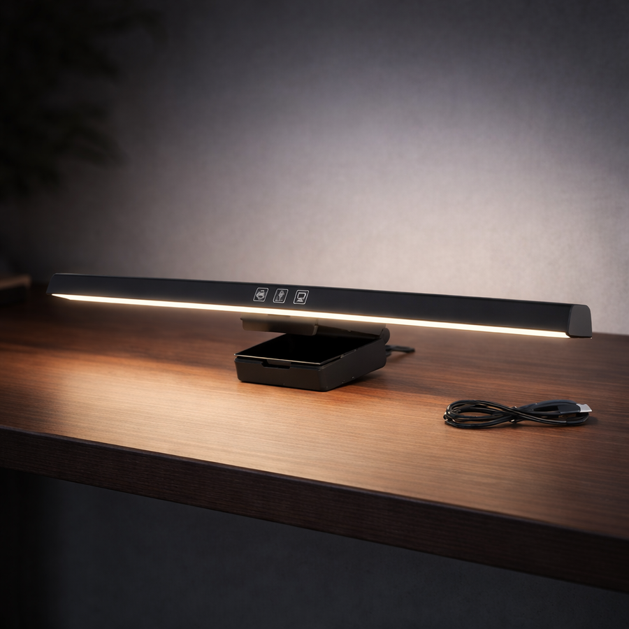 • Eye-Care Lighting Technology – Designed to reduce eye strain during extended screen use by eliminating flicker and harsh direct light. The forward-projecting beam keeps your screen free from reflections while maintaining even, comfortable illumination.