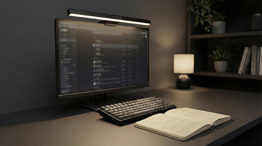 Standard desk lamps are built to illuminate documents rather than screens, directing light toward a small portion of the desk. Because of this, the lighting across your desk and monitor becomes unbalanced, which can lead to reflections on the screen, harsh shadows, and unnecessary eye fatigue.